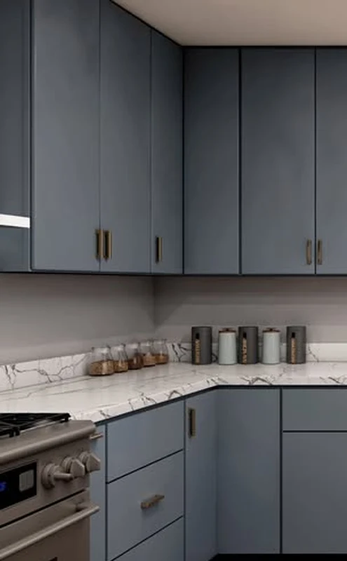 - If you’re pairing it with contemporary finishes — flat European slabs, painted or thermofoil surfaces — the frameless nature complements the look beautifully.